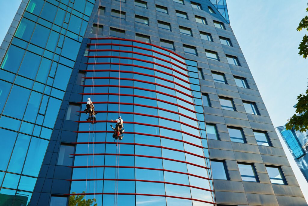 تنظيف واجهات الزجاج والواجهات الخارجية للمباني وإزالة الغبار والأوساخ.